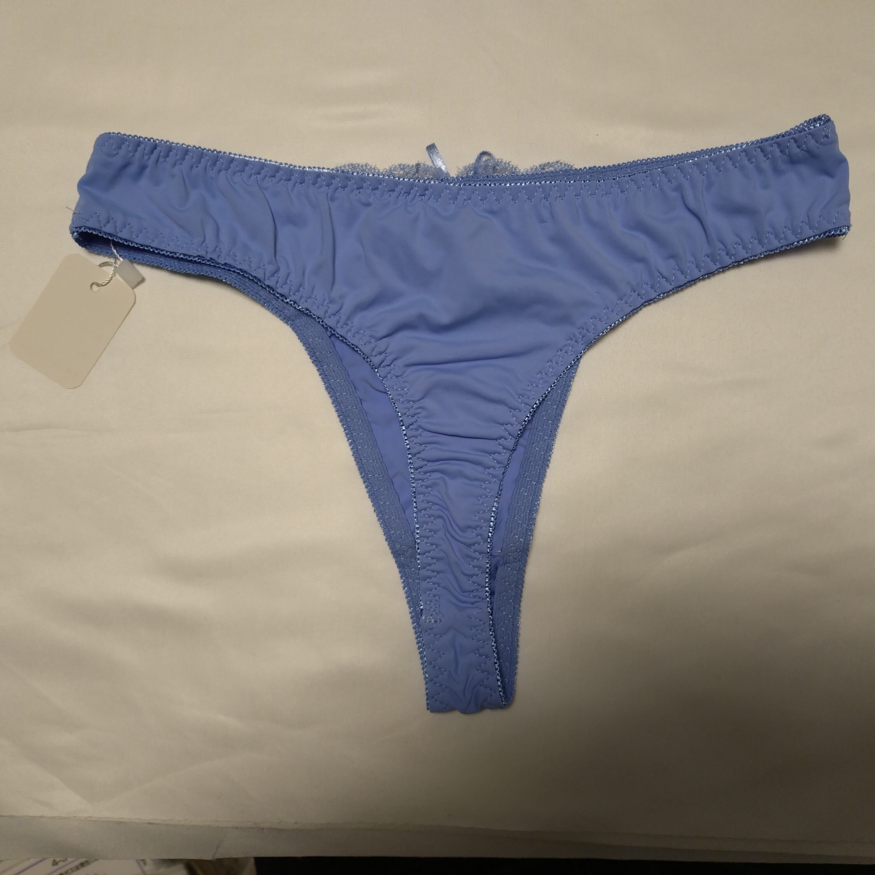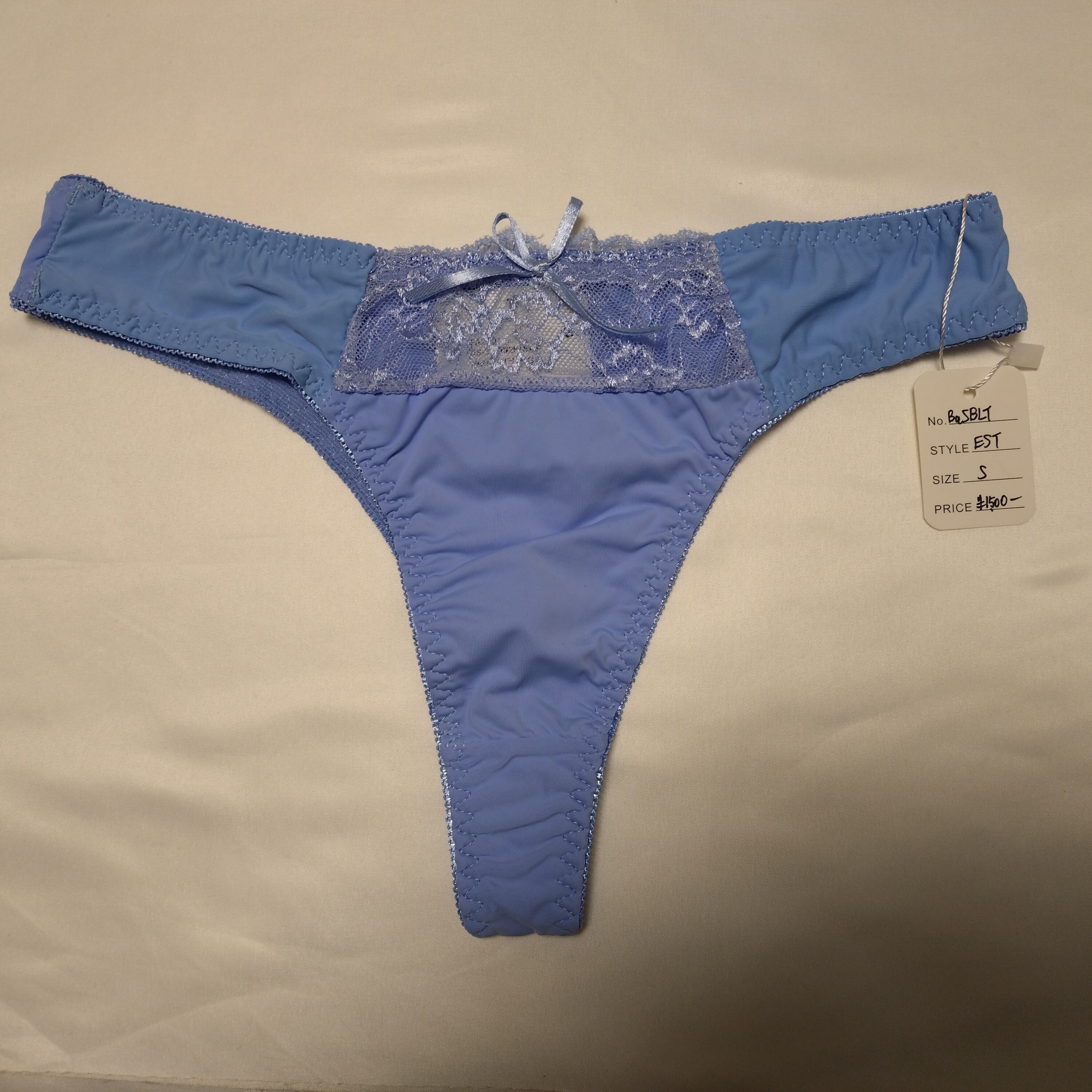 【Estair】サテン×レース リボンTバックショーツ(Sサイズ・ブルー)