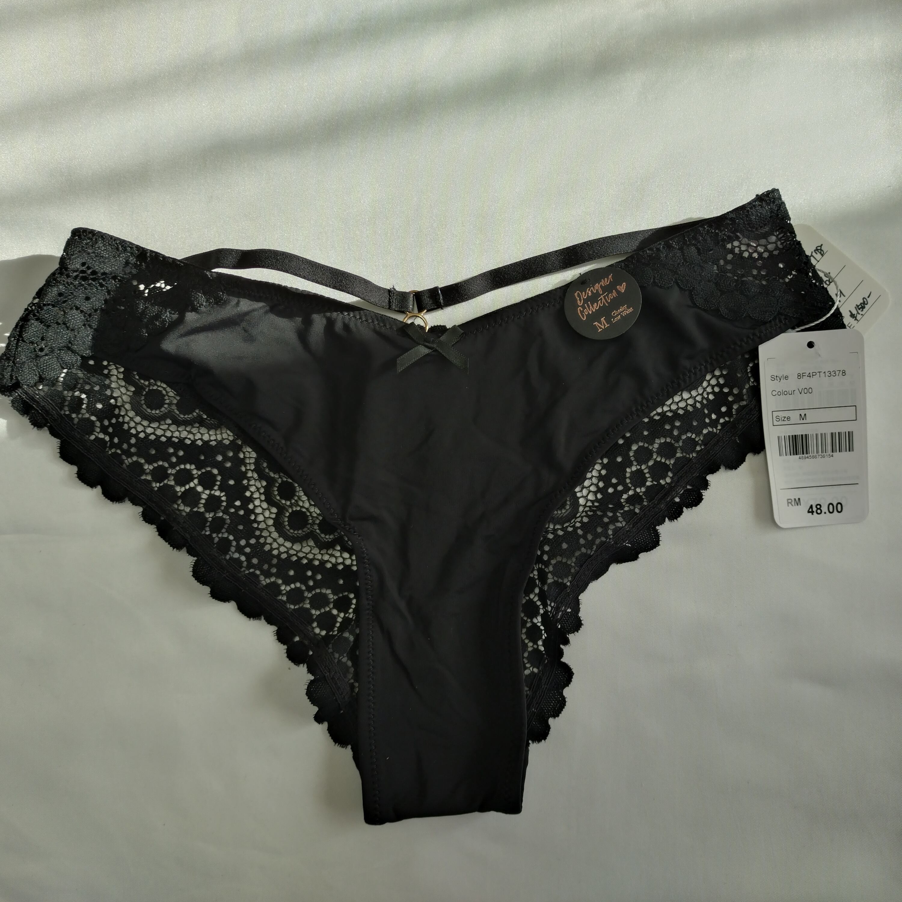 【6IXTY8IGHT】クロスストラップ×レースショーツ(Mサイズ・ブラック)