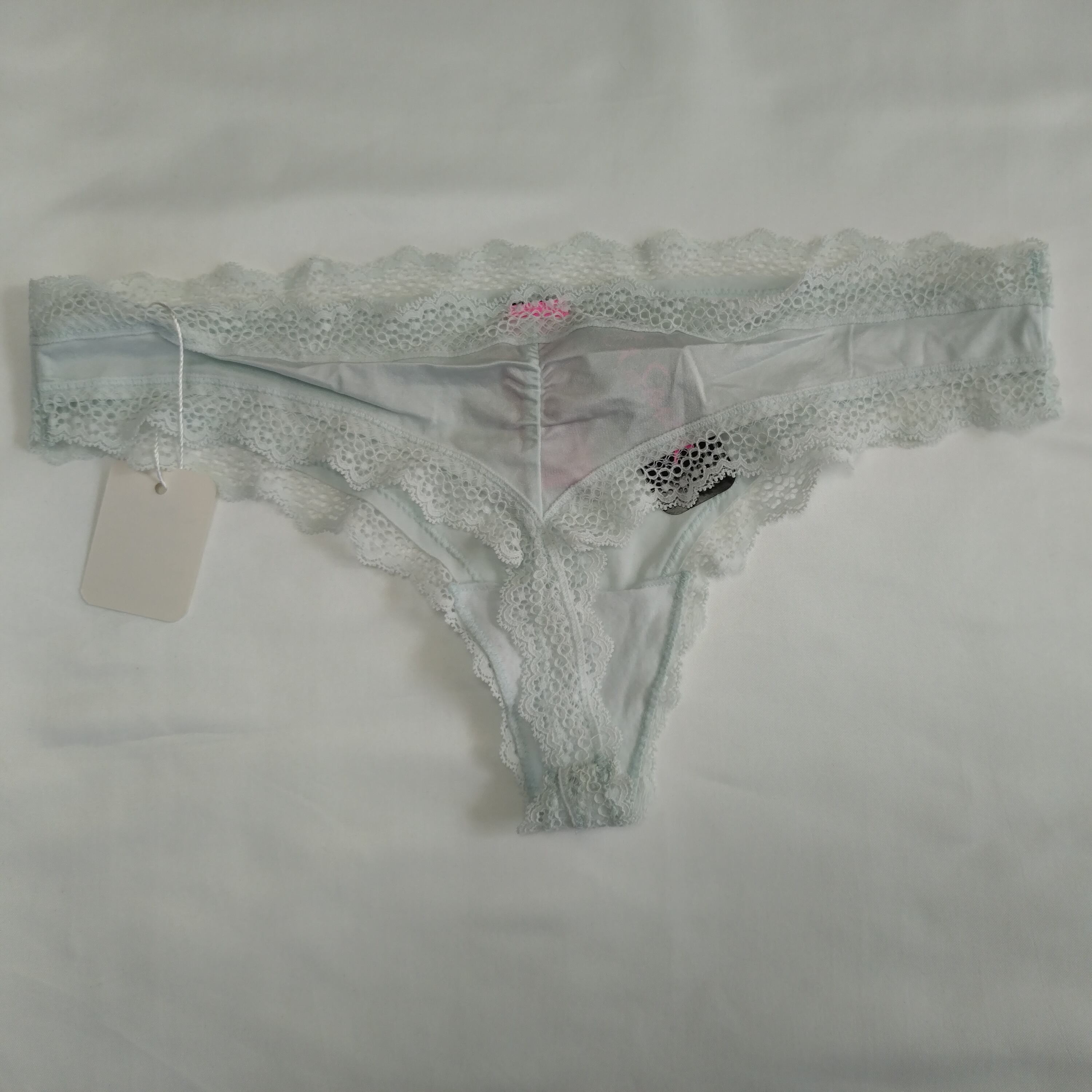 繊細なフロストブルーカラーが印象的なレースTバックショーツ。柔らかく透け感のある生地とレースが、軽やかで洗練された印象を演出します。バックスタイルはエレガントなカッティングで、美しいヒップラインを引き立てます。ヴィクトリアシークレットの姉妹ブランドならではの高品質な仕上がり。