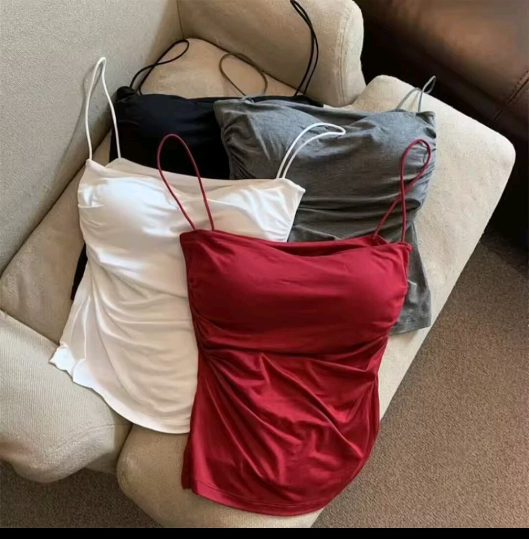 シンプルでありながら存在感のあるブラックカラーのブラトップ。胸元のギャザーが自然な立体感をつくり、女性らしい曲線美を際立たせます。細ストラップが華奢な印象を与え、どんなコーディネートにもマッチ。ストレッチの効いた柔らかな素材で、インナーとしても一枚着としても快適に着こなせます。モードにもカジュアルにも映える、ワードローブに欠かせない定番アイテム。