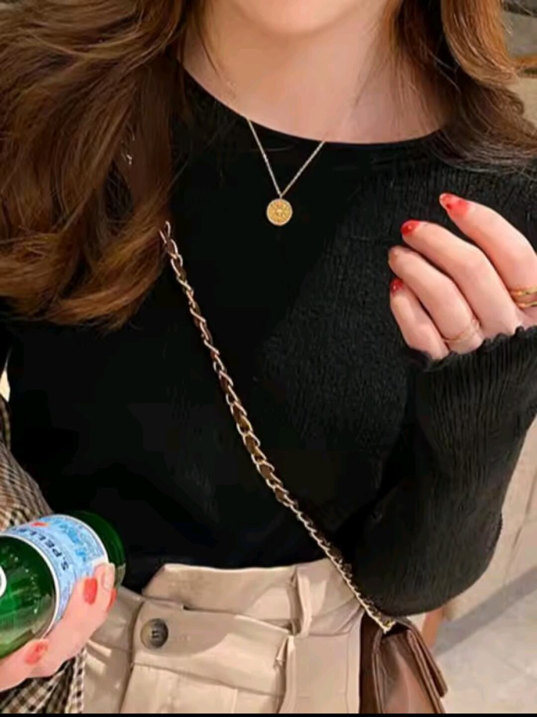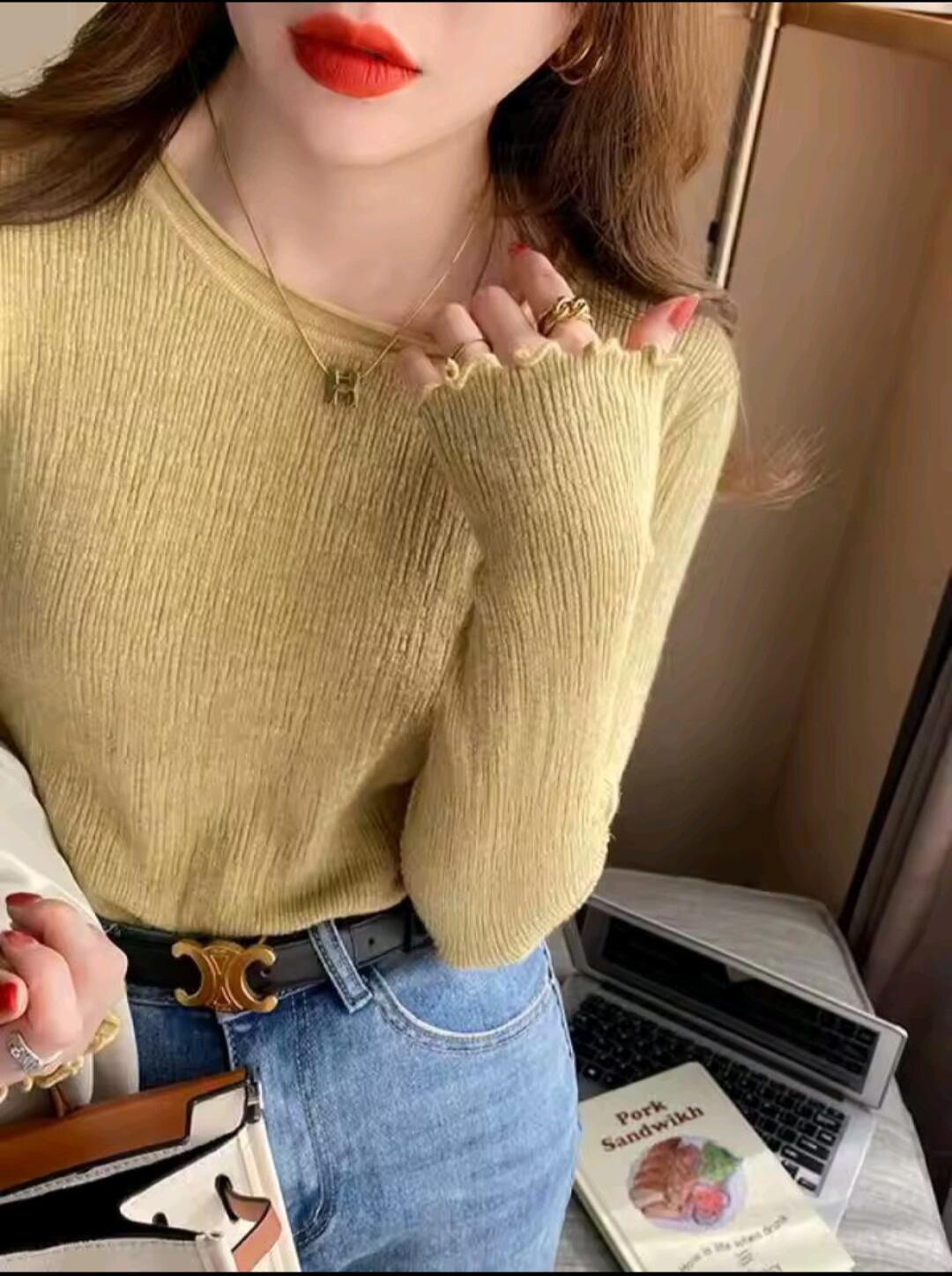 柔らかなリブ素材で仕立てた、シンプルながらも女性らしさを引き立てる長袖プルオーバー。