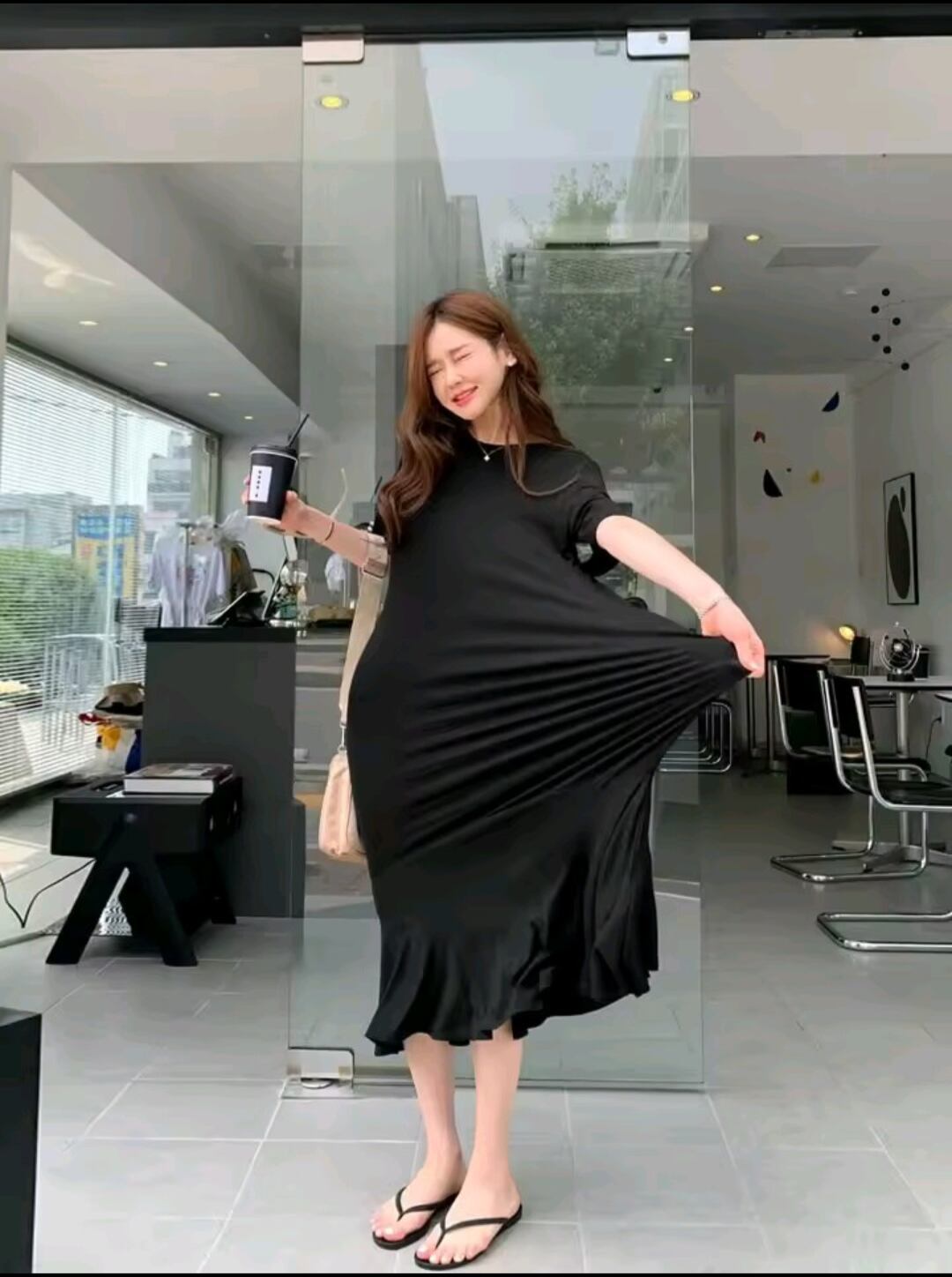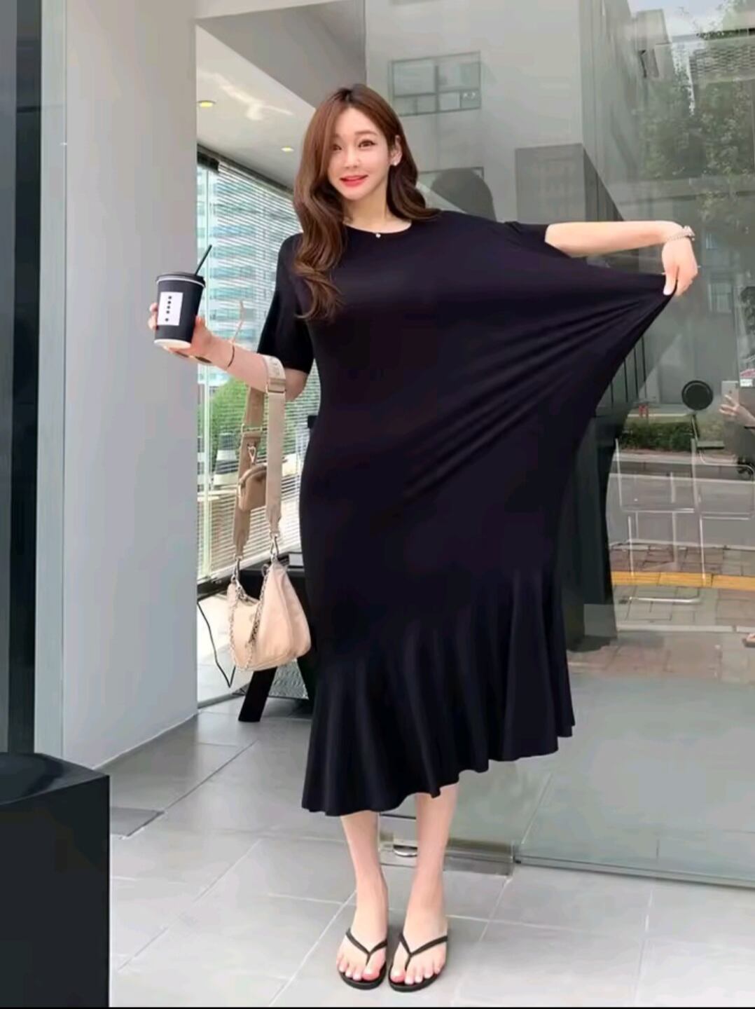 大人のゆったりAラインワンピース ( L / XL / XXL / XXXL )【ブラック】