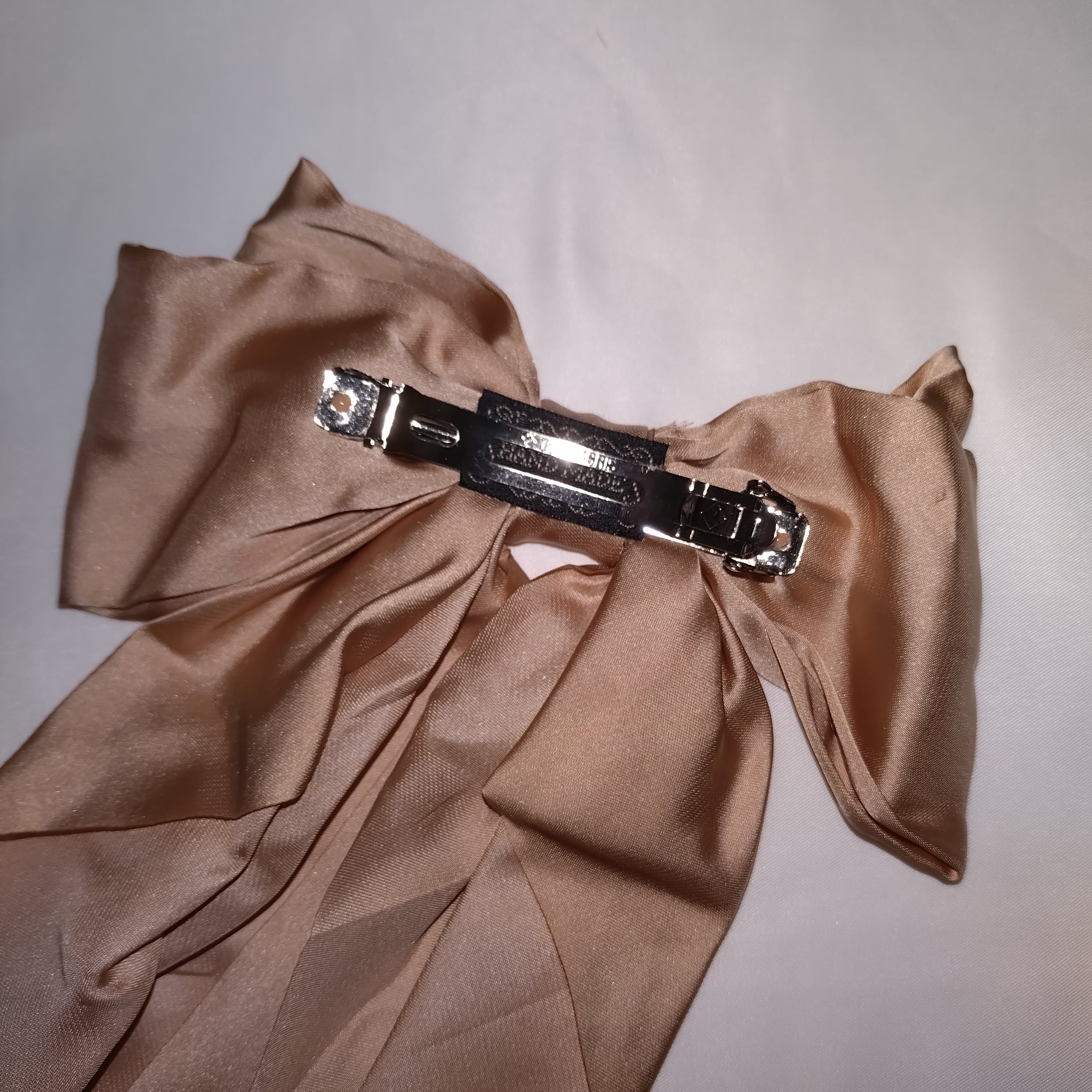 シルクのような光沢感があり、髪にさっと留めるだけで上品でフェミニンな印象に。